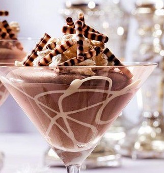 Danach die flüssige Schokolade mit dem Schneebesen unter die Eimischung rühren und etwas abkühlen lassen. Anschliessenden den frischen Rahm mit dem Mixer steif schlagen und zuerst die eine Hälfte davon locker mit einem Gummischaber unter die Schokoladenmischung heben, dann den restlichen Schlagrahm genauso darunter heben. Zuletzt das Eiweiss zusammen mit einer Prise Salz mit dem Mixer zu Eischnee schlagen und vorsichtig unter das Schoggimousse ziehen. Das fertige Dessert kann nun für ca. 120 Minuten in den Kühlschrank gestellt werden, bevor das Dessert gekühlt serviert werden kann.