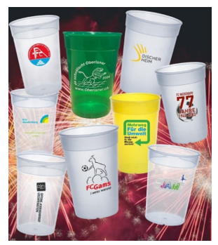 Innovative, nachhaltige und kreative Verwendungsmöglichkeiten bietet das Sortiment Mehrwegbecher. Einsetzbar an Vereinsaktivitäten, Schulen, Kita's, Jugendarbeit, generell für Events im In- und Outdoorbereich - ein willkommener Gast, welcher zur Reduzierung von Abfall behilflich ist. Eine Personalisierung ist bereits ab 50Stk. möglich und lässt Erinnerungen an tolle Anlässe immer wieder wach werden!